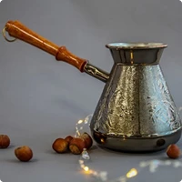 Handgemaakte turka met dikke wanden en gelijkmatige verwarming. Comfortabele handgreep die niet warm wordt, uitloop zonder druppelen. Ideaal voor wie ‘s ochtends geen haast heeft.