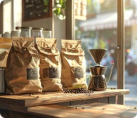 Kies de gewenste producten in onze catalogus: koffiebonen, gemalen koffie, capsules, cacao of een proefpakket.